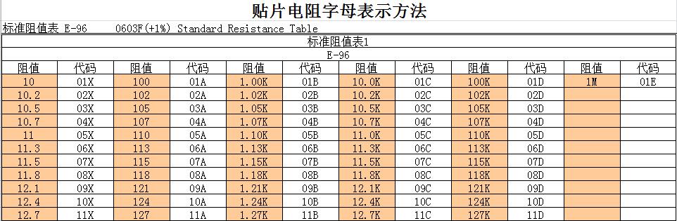 貼片電阻字母表示法